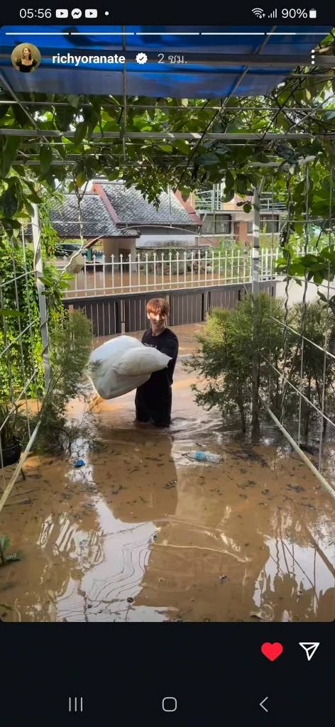 กลายเป็นผู้ประสบภัยทันที เมื่อบ้านที่เชียงใหม่ของ “ริชชี่ อรเณศ ดีคาบาเลส” น้ำท่วมอย่างฉับพลัน โดยแฟนหนุ่ม “ก็อต อิทธิพัทธ์ ฐานิตย์” ก็อยู่ที่บ้านนั้นด้วย ซึ่ง “ก็อต” ได้โพสต์ข้อความว่า