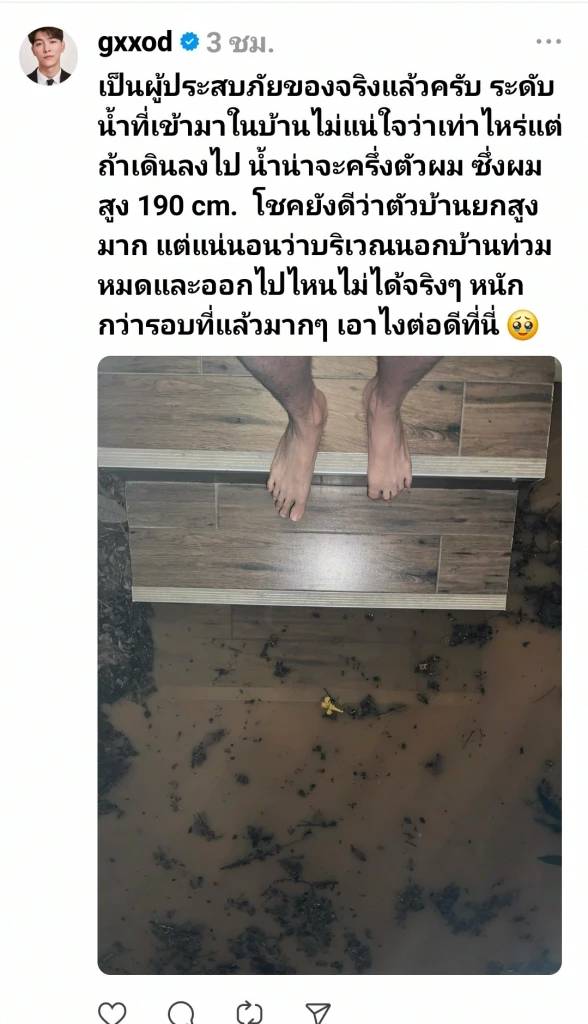 “เป็นผู้ประสบภัยของจริงแล้วครับ ระดับ น้ําที่เข้ามาในบ้านไม่แน่ใจว่าเท่าไหร่แต่