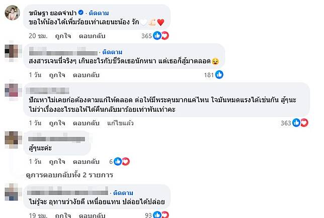 ท่ามกลางคอมเมนต์แฟนๆ ส่งกำลังใจให้จำนวนมาก และคอมเมนต์ต่างๆถึงคนที่สร้างความเดือดร้อน ให้ เจนนี่ และ ยิว ครั้งนี้ ใครที่ ยิว พูดถึงบุกมาไถเงินถึงเตียง 5 ล้าน
