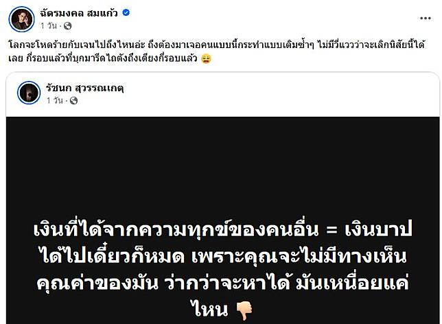 ยิว ฉัตรมงคล สามี เจนนี่ ได้หมดถ้าสดชื่น โพสต์เศร้าให้กำลังใจภรรยาว่า “โลกจะโหดร้ายกับเจนไปถึงไหนอ่ะ ถึงต้องมาเจอคนแบบนี้กระทำแบบเดิมซ้ำๆ ไม่มีวี่แววว่าจะเลิกนิสัยนี้ได้เลย กี่รอบแล้วที่บุกมารีดไถตังค์ถึงเตียงกี่รอบแล้ว”
