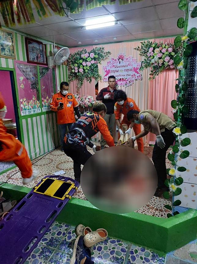 จากการสอบสวนในเบื้องต้นทราบว่า ที่บ้านเกิดเหตุมีการจัดงานแต่งงานระหว่างนางสาวกาญจณา ปาจันทึก อายุ 44 ปี เจ้าสาว กับนายจาตุรงค์ สุขสุข อายุ 29 ปี เจ้าบ่าว โดยมีการจัดพิธีมงคลสมรสและเลี้ยงอาหารแขกที่มาร่วมงานในช่วงเช้าจนเสร็จสิ้น และในช่วงเย็นเจ้าบ่าวและเจ้าสาวพร้อมด้วยญาติๆได้นั่งรับประทานอาหารและเครื่องดื่มกันในช่วงค่ำที่บ้านดังกล่าว โดยเจ้าบ่าวนายจาตุรงค์ฯเป็นอดีตทหารพรานและขาพิการจากการปฏิบัติหน้าที่มอายุน้อยกว่าเจ้าสาวนางสาวกาญจนาฯ 15 ปี