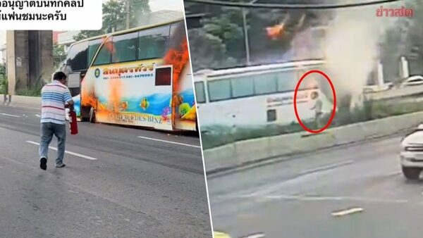 - อ่านข่าว : นาทีไฟไหม้รถบัส คนขับเปิดประตูวิ่งลงรถ พยายามเปิดประตูฉุกเฉิน หยิบถังดับเพลิงช่วยดับ