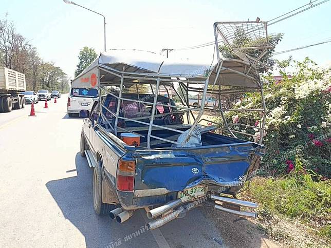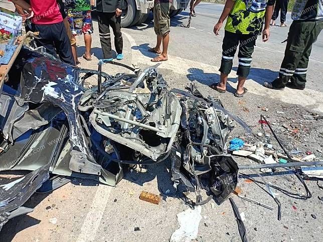 ที่เกิดเหตุ พบรถบรรทุกพ่วง 18 ล้อ ยีห้อฮีโน่ สีขาว หมายเลขทะเบียน 70-2373 ตาก เฉี่ยวชนเข้ากับรถกระบะโตโยต้าไม ตี้เอ็กซ์ สีเขียว หมายเลขทะเบียน กฉ9532 สุโขทัย และรถเก่งนิสสันสีดำ หมายเลขทะเบียน สณ 2467 กรุงเทพมหานคร ตกลงไปคูคลองข้างถนน ส่งผลให้มีผู้ได้รับบาดเจ็บ 4 ราย และเสียชีวิตในที่เกิดเหตุ 1 ราย