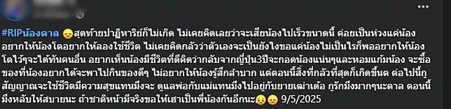 ตอนนี้สงสัยเงินในบัญชีน้องด้วย แต่ต้องรอคำตอบจากธนาคารที่ขอไปตั้งแต่น้องหายได้ 2 วันแล้ว แต่ต้องรออีก5 วันถึงจะรู้ ขอแค่คลิปจากกล้องที่น้องโดดสะพาน แล้วก็กล้องหน้ารถที่น้องขึ้น แค่อยากรู้ความจริงว่าน้องตั้งใจจริงๆหรือยังไง พ่อก็ยังไม่เห็นคลิปเลยด้วยซ้ำ