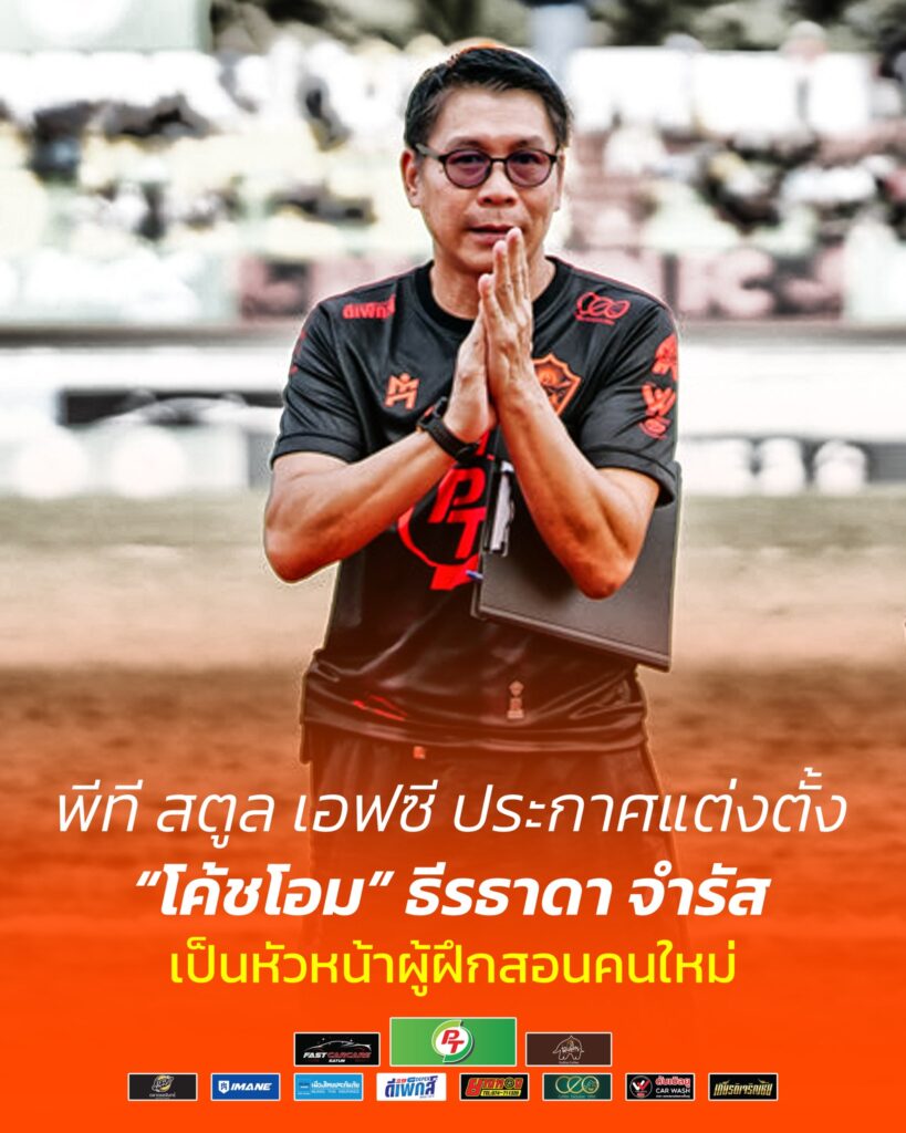 พีที สตูล เอฟซี ประกาศแต่งตั้ง โค้ชโอม ธีรธาดา จำรัส กุนซือมากประสบการณ์ เป็นหัวหน้าผู้ฝึกสอนคนใหม่ โดยผลงานฤดูกาลล่าสุดในโซนใต้ พาทีมพัทลุงเอฟซีคว้าแชมป์ฟุตบอลด้วยบีจีซี เมืองไทยประกันภั คัพ เป็นครั้งแรกในประวัติศาสตร์