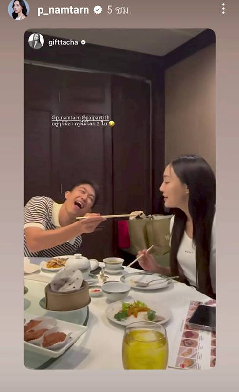 ล่าสุดน้ำตาล ได้แชร์สตอรี่หลังจากที่เพื่อนได้ถ่ายตนเองและหนุ่มไผ่ ขณะนั่งกินข้าวด้วยกัน โดยในคลิปเพื่อนเผยว่า “ข่าวบอกโลก 2 ใบ ยังกินข้าวกันน่ารักกันอยู่เลย”