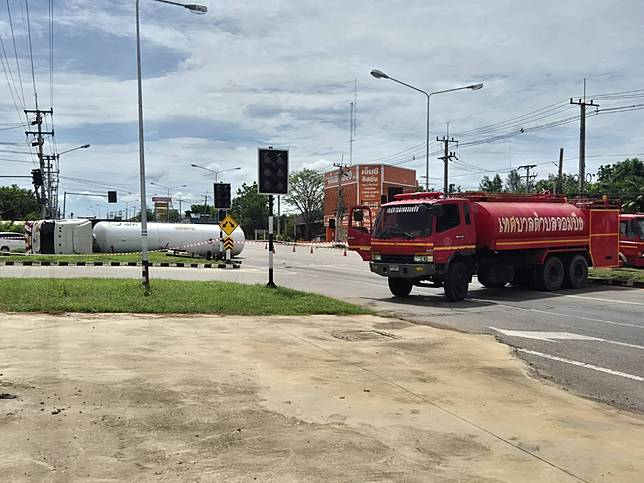 ระทึก!รถบรรทุกแก๊ส 16 ตันพลิกคว่ำกลางสี่แยกใกล้ปั๊มน้ำมันเจ้าหน้าที่ต้องกันพื้นที่และเร่งฉีดน้ำเกรงจะระเบิด