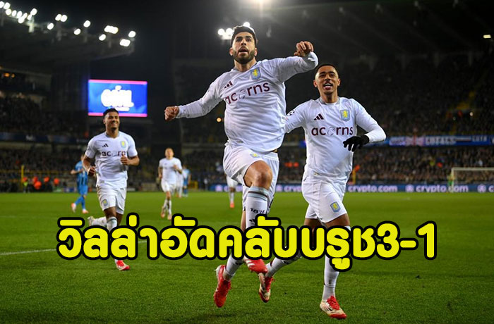 จบเกม แอสตัน วิลล่า บุกชนะ คลับ บรูช 3-1 กุมความได้เปรียบก่อนกลับไปเล่นนัดสองที่บ้านตัวเองในสัปดาห์หน้า