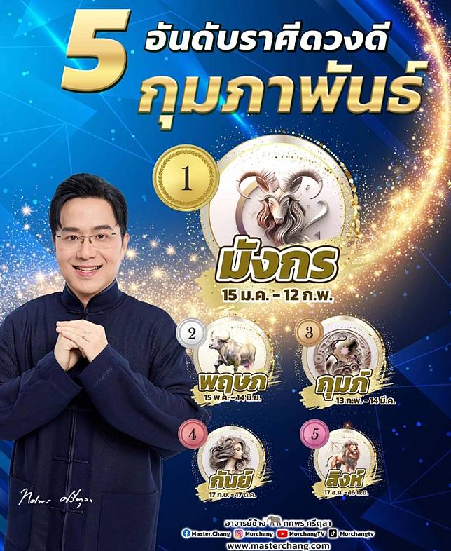 เรื่องของดวงชะตาราศี ถือได้ว่าเป็นความเชื่อส่วนบุคคล หมอช้าง ทศพร เปิด 5 อันดับราศี ดวงดี ดังนี้