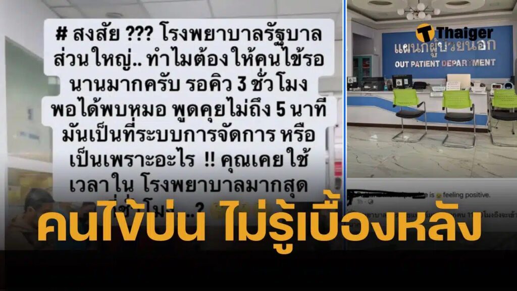 โรงพยาบาลรัฐเป็นหนึ่งในสถานบริการการแพทย์ที่เนืองแน่นด้วยคนไข้ตลอดเวลา ผู้ป่วยต้องรีบมาเข้าคิวรอรับบัตรคิวแต่เช้าตรู่ ต้องรอหลายชั่วโมงเพื่อพบหมอ ทำให้หลายคนสงสัยว่าเป็นเพราะอะไร ถึงต้องรอนานขนาดนี้ เป็นที่ระบบจัดการหรือไม่ ซึ่งมีคนได้ถามความเห็นลงในโซเชียล ต่างแลกเปลี่ยนว่าส่วนใหญ่โรงพยาบาลรัฐเป็นแบบนี้เหมือนกันหมด
