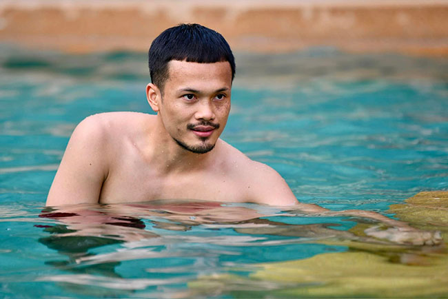 ที่สระว่ายน้ำโรงแรมดุสิตปริ๊นเซส กรุงเทพฯ ทีมฟุตซอลทีมชาติไทยฟื้นฟูร่างกาย เพื่อเตรียมความก่อนทำศึกเอเอฟซี ฟุตซอลเอเชียน คัพ รอบ 8 ทีมสุดท้าย กับ ทีมชาติอิรัก วันที่ 24 เมษายนนี้