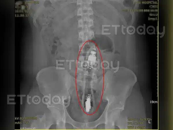 หมอตรวจร่างกายต้องตะลึง มีวัตถุติดอยู่ในลำไส้ตรงของเขาจริงๆ เมื่อใช้เครื่องมือคีบออกมาจึงพบว่าเป็นแท่งนวดขนาดกว่า 20 เซนติเมตร ที่ยังสั่นสะท้านไม่หยุด โชคดีที่ลำไส้ไม่ทะลุ