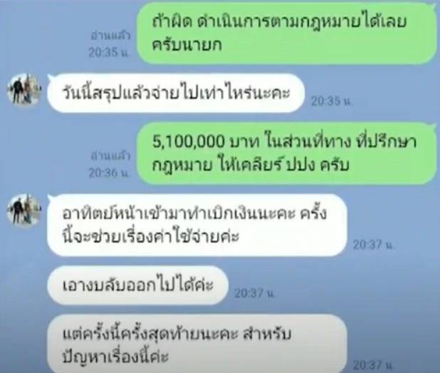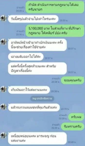 และได้เปิดเผยว่าตนนั้นทำร้านจิวเวอร์รี่ และเป็นนักการเมือง ตำแหน่งที่ปรึกษาของนายกรัฐมนตรี ซึ่งมีการส่งแชทที่คุยกับนายกแพทองธาร มาให้เธอดูด้วย ในแชทนั้น พูดคุยกันในเรื่อง ปปง / งบลับ / การจ่ายเงิน / และการแต่งงาน ซึ่งเป็นสิ่งที่คาดว่า จะเป็นการสร้างแชทขึ้นมาเอง