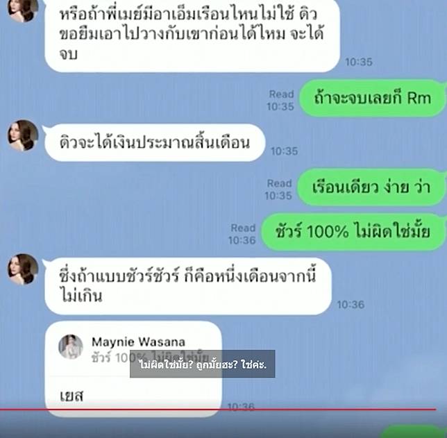 สร้อยมันเด่นมาก ถ้าหลุดไปรู้เลยว่าเป็นของเมย์ และจะเกิดคำครหา ก็ย้ำว่า ห้ามเอาของพี่ไปจำนำ และขายเด็ดขาดนะ ซึ่งมันมีข่าวแบบนั้น จนเมย์เสียภาพลักษณ์ จนถึงบริษัท และโดนเรียกสอบหมดเลย คนที่รู้จักเราจริงๆเราเป็นแบบนั้น เราซีเรียสเรื่องเครดิต (อ่านแชทดิวตอนที่ทักขอยืม)