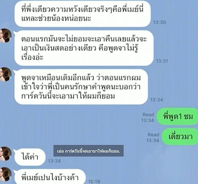 จากนั้นเขาเลยถามว่าพอมีให้ยืมไหม 20 วัน (พูดแบบนี้ไม่กลัวโดนฟ้องเหรอ?) มันถึงจุดมาแล้ว อยากให้ทุกอย่างจบ แค่อยากได้ของคืน