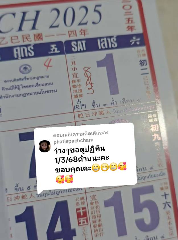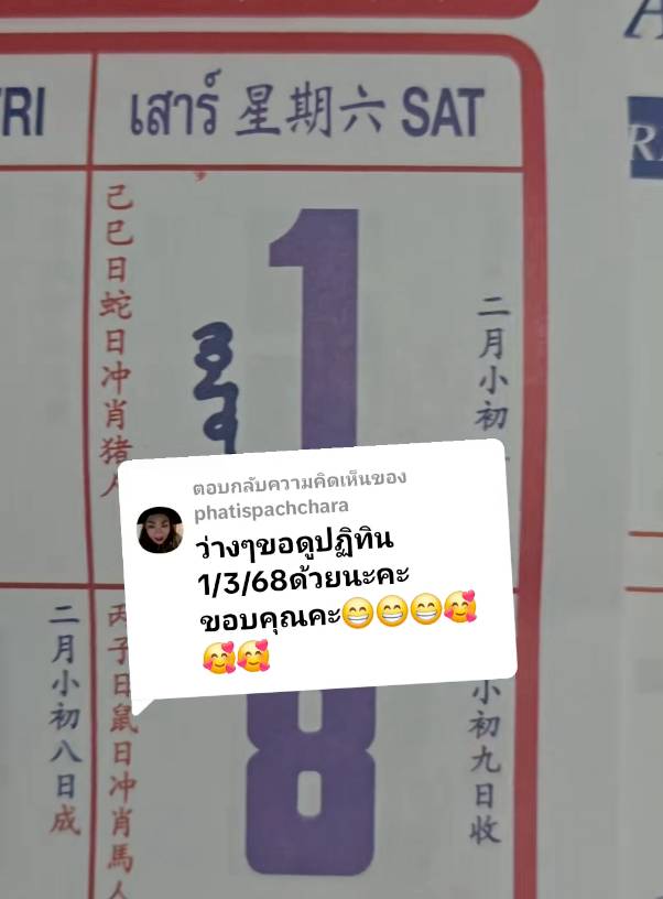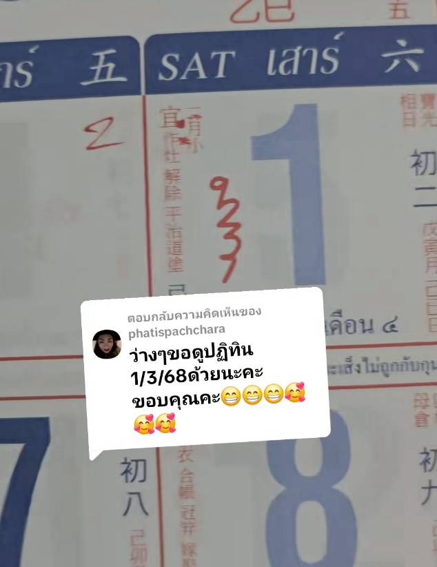 เลขปฏิทินจีน งวด 1 มีนาคม 2568
