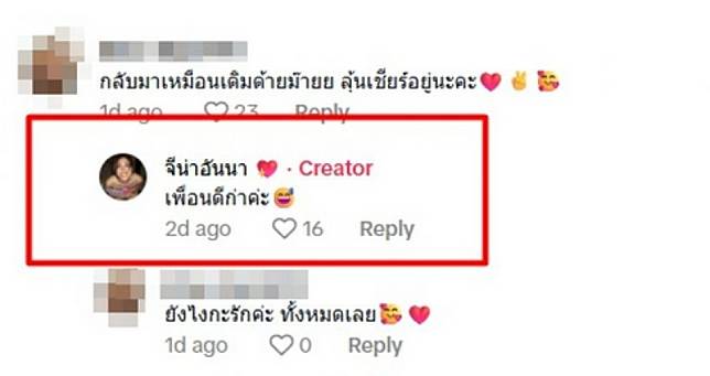 ล่าสุด สาวจีน่า โพสต์คลิปลง TikTok @jenaanna เผยโมเมนต์ไปกินข้าวกับลูกๆ และหนุ่มโอ๊ต พร้อมข้อความระบุว่า “เป็นเพื่อนกันได้จริงไหม” และ “มาทำหน้าที่เป็นพ่อกับแม่กันค่ะ