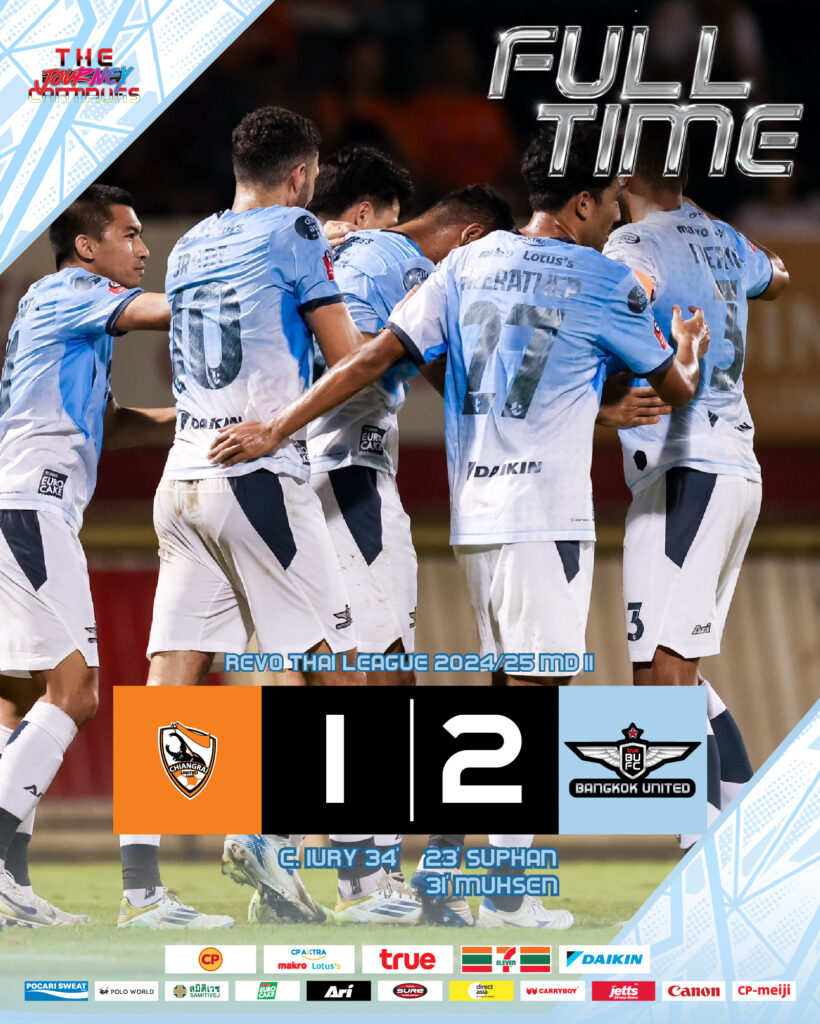 จบเกม ทรู แบงค็อก ยูไนเต็ด บุกไปชนะ สิงห์ เชียงราย ยูไนเต็ด 2-1 เก็บสามคะแนนได้สำเร็จ