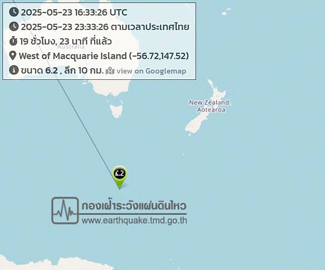 ขณะที่ผลการตรวจเช็กแผ่นดินไหวทั่วโลกเรียกว่าใช้รหัสแดงได้เลย เกิดขึ้นที่ West of Macquarie Island ขนาดความสั่นมากถึง 6.2 แมกนีจูด ห่างจากประเทศไทยอยู่ที่ 8,954 กิโลเมตร