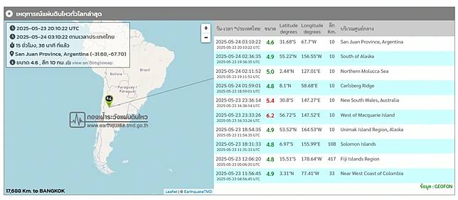เช็กแผ่นดินไหว 24 พ.ค. 68 ( 0.00 – 19.00 น. )