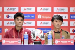 มาซาทาดะ อิชิอิ และ พีรดนย์ ฉ่ำรัศมี ร่วมแถลงความพร้อมก่อนเกม ทีมชาติไทย พบ มาเลเซีย วันเสาร์นี้ ที่ราชมังคลากีฬาสถาน วันที่ 13 ธันวาคม 2567 เวลา 16.30 น. ณ ห้องแถลงข่าวภายในสนาม ราชมังคลากีฬาสถาน ฝ่ายจัดการแข่งขันสหพันธ์ฟุตบอลอาเซียน จัดงานแถลงข่าวก่อนการแข่งขันฟุตบอล ASEAN Mitsubishi Electric Cup 2024 รอบแบ่งกลุ่ม กลุ่มเอ นัดที่สอง ระหว่าง ทีมชาติไทย พบกับ ทีมชาติมาเลเซีย การแถลงข่าวครั้งนี้ ทีมชาติไทย นำโดย มาซาทาดะ อิชิอิ หัวหน้าผู้ฝึกสอน พร้อมด้วย พีรดนย์ ฉ่ำรัศมี กองกลางกัปตันทีมชาติไทย โดย มาซาทาดะ อิชิอิ กล่าวว่า “ก่อนอื่นต้องขอบคุณทางสื่อมวลชนที่ให้ความสนใจในแมตช์นี้ เกมแรกเราต้องไปเยือน ติมอร์ เลสเต เกมนี้ถือเป็นนัดแรกในบ้าน เราเตรียมความพร้อมกับเกมนี้มาเป็นอย่างดี […]