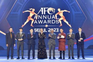ครั้งแรกในรอบ 30 ปี! มาดามแป้ง รับรางวัล สมาคมกีฬาฟุตบอล ยอดเยี่ยมแห่งปี AFC Annual Awards ที่เกาหลีใต้ —————– “มาดามแป้ง” นวลพรรณ ล่ำซำ นายกสมาคมกีฬาฟุตบอลแห่งประเทศไทยฯ รับรางวัล สมาคมฟุตบอลยอดเยี่ยม (𝐀𝐅𝐂 𝐌𝐞𝐦𝐛𝐞𝐫 𝐀𝐬𝐬𝐨𝐜𝐢𝐚𝐭𝐢𝐨𝐧 𝐨𝐟 𝐭𝐡𝐞 𝐘𝐞𝐚𝐫) ระดับ Diamond ในงาน AFC Annual Awards Seoul 2023 ที่ Grand Peace Palace มหาวิทยาลัย Kyung Hee เมื่อวันที่ 29 ตุลาคม 2567 โดยถือเป็นรางวัลแรกที่ สมาคมฯ ได้จาก เอเอฟซี ในรอบ 30 ปี นับตั้งแต่มีการจัดงานประกาศรางวัลนี้ขึ้นครั้งแรกในปี 1994 สำหรับ รางวัลดังกล่าวสมาคมกีฬาฟุตบอลแห่งประเทศไทยฯ ถูกเสนอชื่อเข้าชิงร่วมกับ […]
