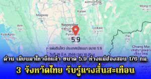ด่วน! เมียนมาไหวอีกแล้ว ขนาด 5.9 ห่างแม่ฮ่องสอน 176 กม. 3 จังหวัดไทยรับรู้แรงสั่นสะเทือน