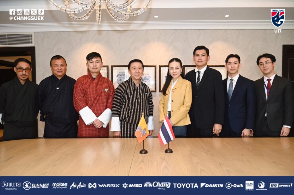 “มาดามแป้ง” นวลพรรณ ล่ำซำ นายกสมาคมกีฬาฟุตบอลแห่งประเทศไทยฯ ลงนามบันทึกข้อตกลง (MOU) ร่วมกับ สหพันธ์ฟุตบอลภูฏาน อย่างเป็นทางการ ในฐานะประเทศแรกจาก สหพันธ์ฟุตบอลแห่งเอเชียใต้ โดยมี ดาโช อูเก็น เซชุป โดร์จิ ประธานสหพันธ์ฟุตบอลภูฏาน ร่วมพิธีลงนามด้วยตนเอง พร้อมด้วย เอกพล พลนาวี เลขาธิการสมาคมกีฬาฟุตบอลแห่งประเทศไทยฯ , เปมา โดร์จิ รองประธานสหพันธ์ฟุตบอลภูฏาน และ พุนโช วังดิ หัวหน้าฝ่ายต่างประเทศของสหพันธ์ฯ ร่วมเป็นสักขีพยาน